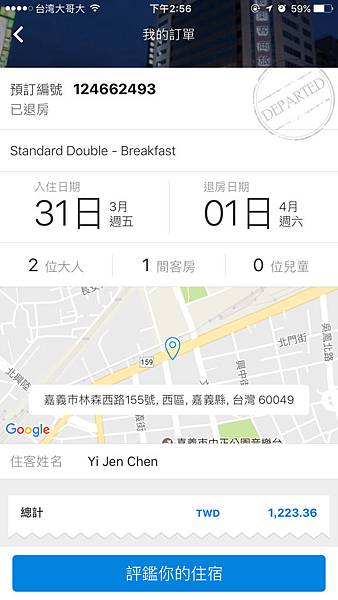 這一趟嘉義行為了慶祝新車的到來還要順便吃我們念念不忘的雞肉飯立刻打開agoda發現一個非常便宜的商旅用google查了一下評分就立刻決定是他了